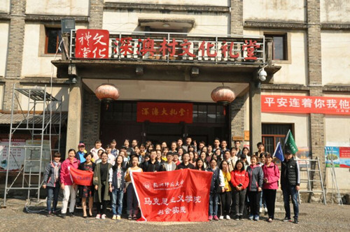 上午,师生首先来到了国家历史名村深澳村,它不但是历史文化名村,也是浙江新农村建设的示范村。大家一起感受了经典的徽派建筑,高大的院墙,讲究的布局,还有那寓意着“肥水不流外人田”的特色天窗。在这样雅致的环境中,倾听着村民讲述十八大以来他们村子的变化,他们脸上满足的笑容便是新农村建设的实际效果。相信在不久的将来,深澳村一定会在新时代里焕发出别样的光彩。
