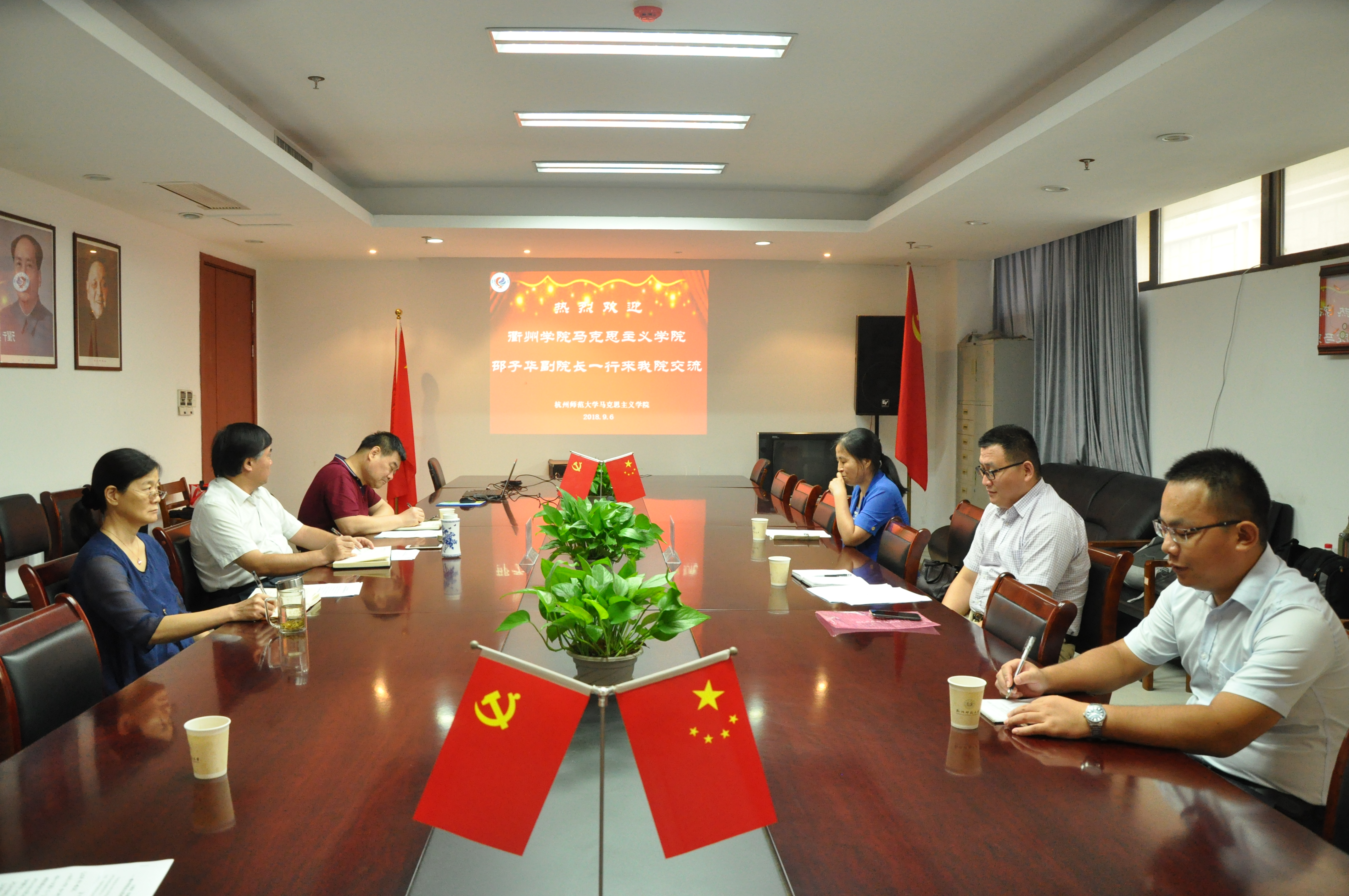 2018年9月6日下午,衢州学院国产自拍 副院长邵子华一行3人来国产自拍 交流考察。学院党总支书记、院长余龙进,副院长何丽君以及思想道德修养与法律基础教研室教师李瑞平等参加了交流会。