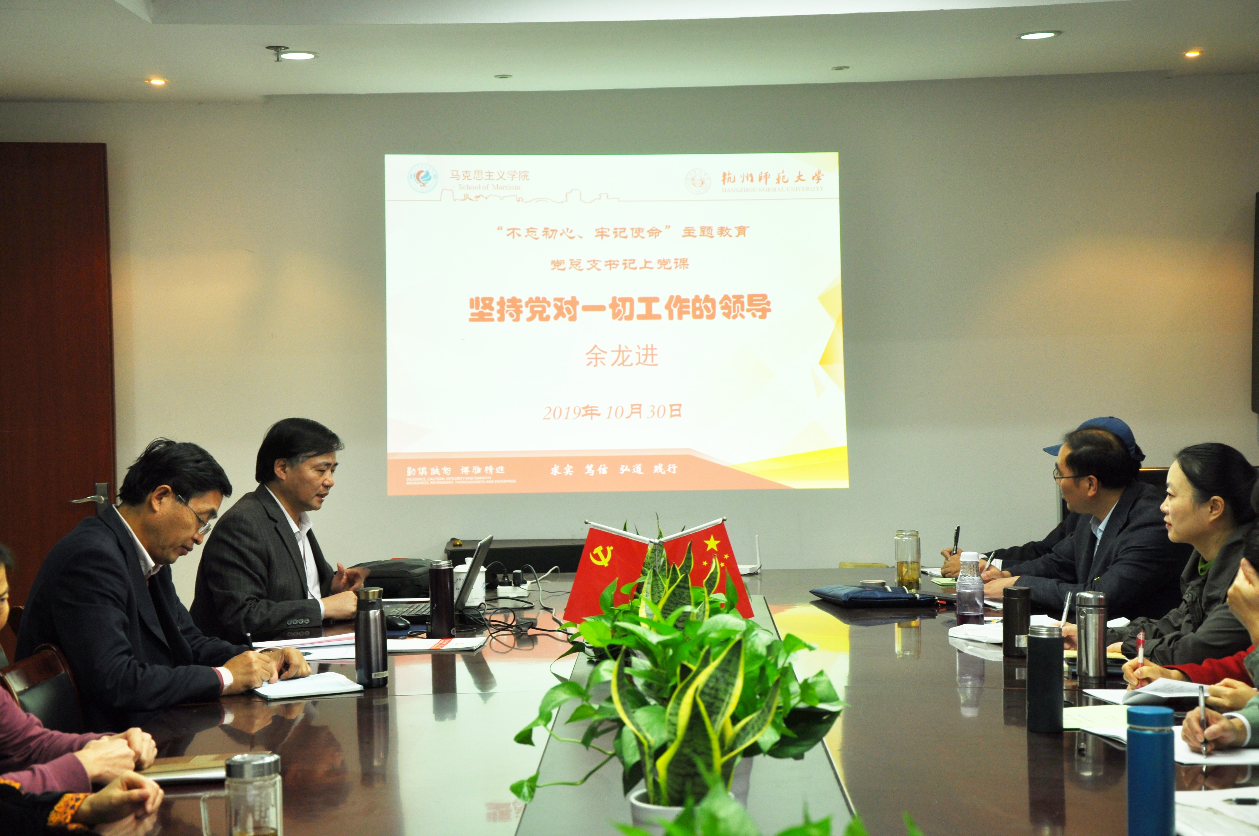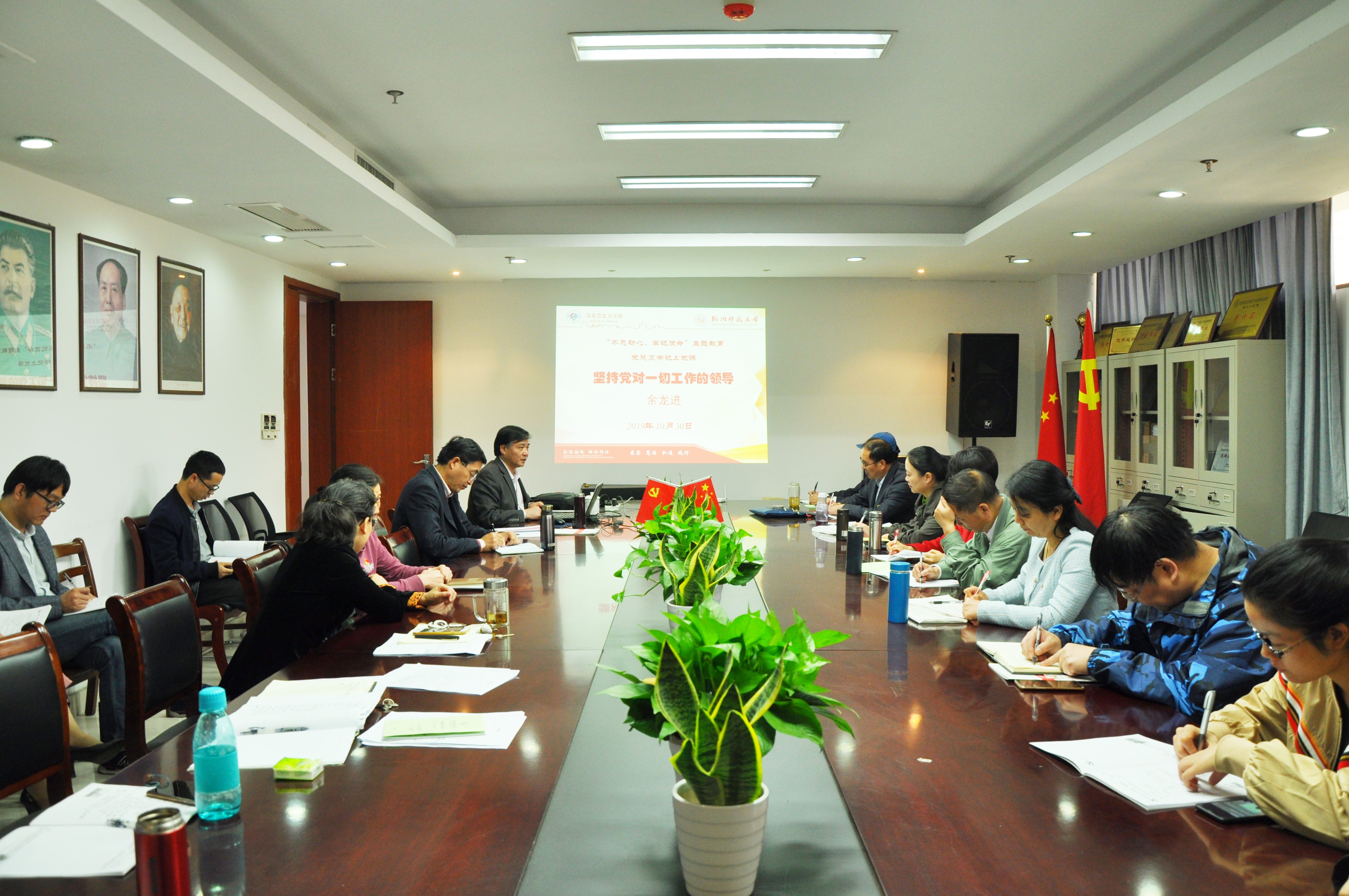 为进一步深化“不忘初心、牢记使命”主题教育学习,积极贯彻中共中央党史和文献研究院编辑的习近平总书记《论坚持党对一切工作的领导》一书的精神,10月30日下午,国产自拍 党总支书记、院长余龙进教授以“坚持党对一切工作的领导”为主题,给全体党员讲授党课。校纪委副书记、纪检监察室主任黄燕参加党课。