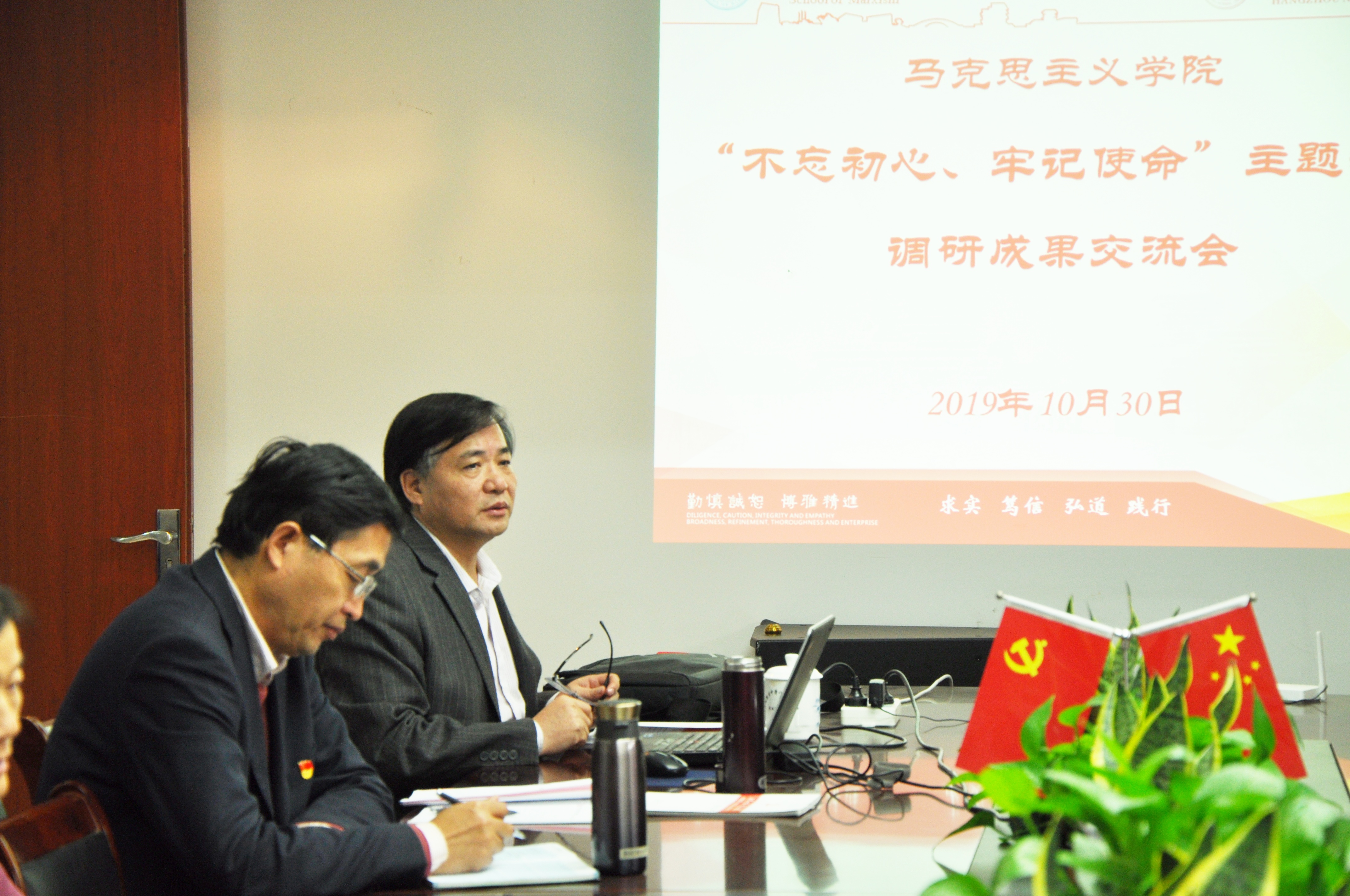 近日,在恕园1号楼306会议室,国产自拍 召开“不忘初心、牢记使命”主题教育调研成果分析交流会,学院全体党员教工参加,会议由学院党总支书记、院长余龙进主持。