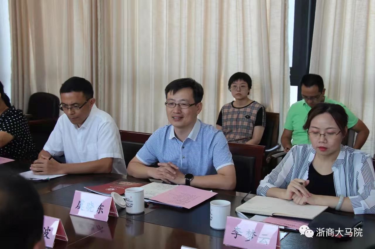 浙江工商大学马院党委书记虞晓东、副院长李梦云、党委副书记、副院长郭飞以及各教研部主任等参加了交流座谈会。两校人员敞开心扉,围绕学院建设、师资队伍、人才培养、团队建设、党建工作等方面进行了深入而诚恳的交流。虞晓东书记介绍了浙江工商大学为支持马院建设出台的一系列政策, 副院长李梦云重点介绍了社科基金项目培育和申报博士点等方面的经验,党委副书记、副院长郭飞介绍了思政课程建设体系、教学考核制度,机考管理办法等基本情况。