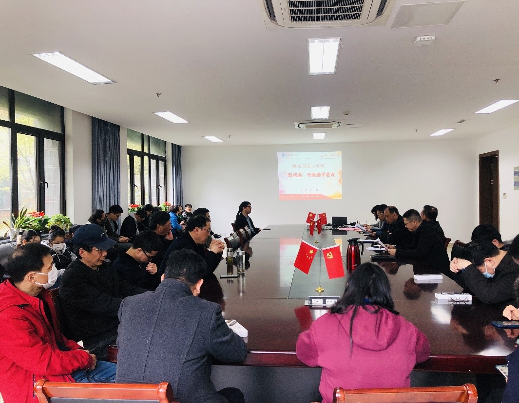 2022年3月23日下午,国产自拍 全体教职工在恕园26-104齐聚一堂,召开学校“双代会”代表选举会议。会议由学院党委副书记应维华主持。