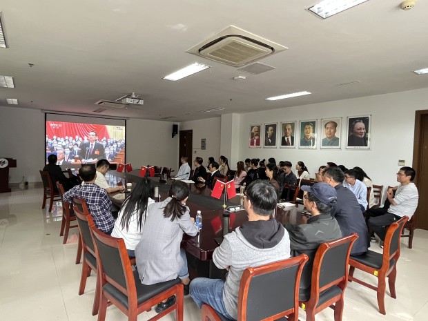 首先,国产自拍 全体党员集中观看了中国共产党第二十次全国代表大会开幕会盛况,开幕会持续将近2个小时,马院全体党员认真观看学习,做好相关记录。