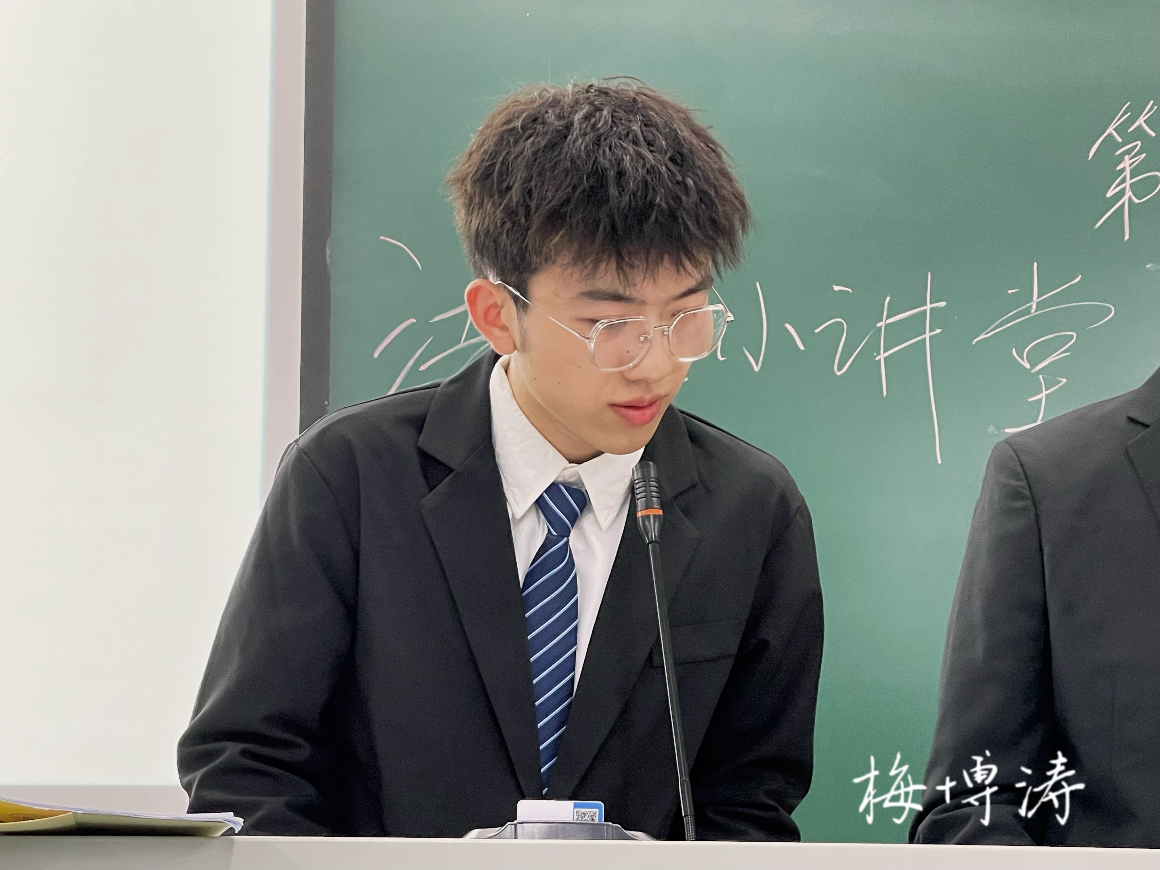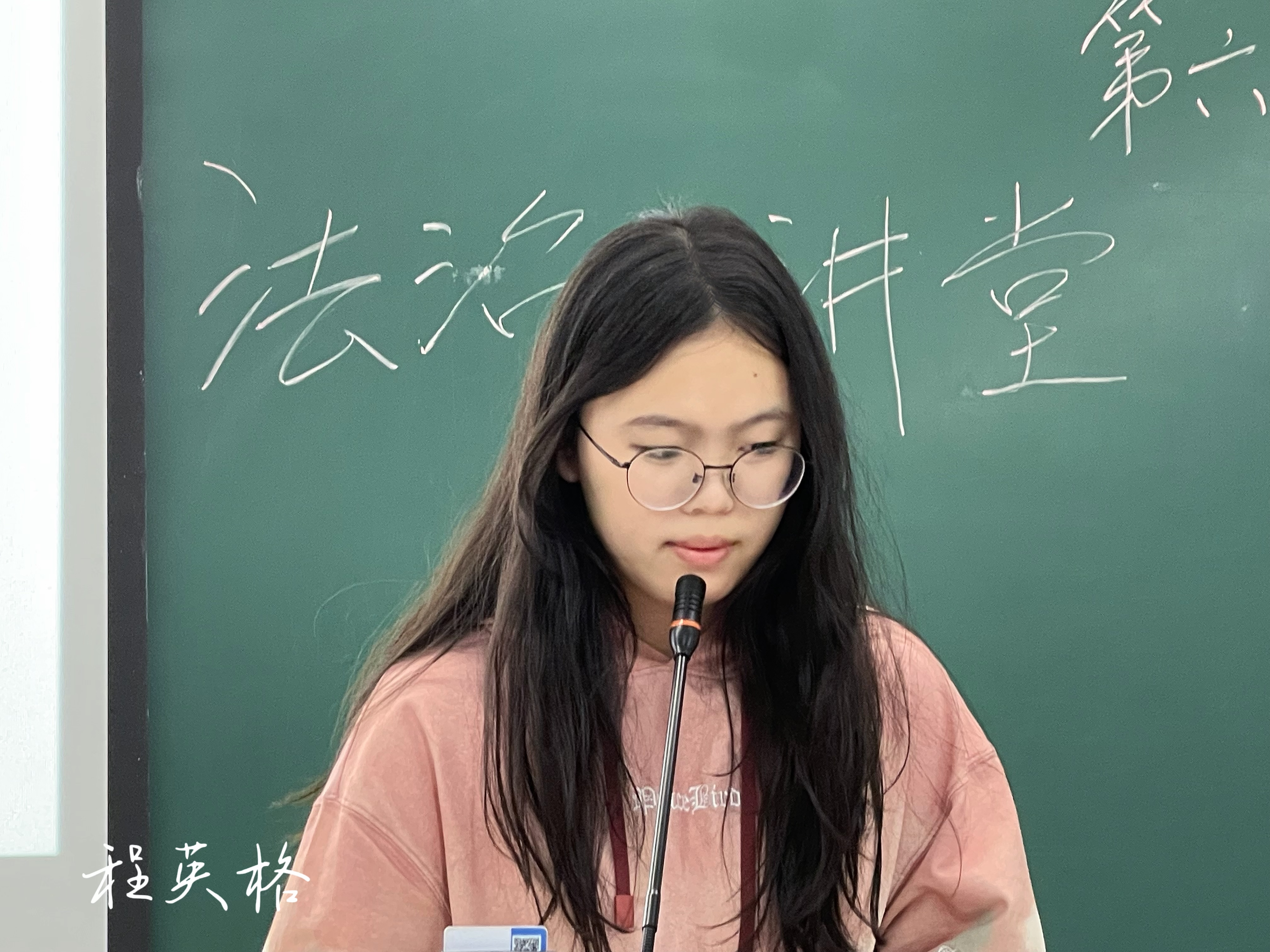 夏天第二波的“法治小讲堂”中我们能够看见同学的进步对案例有更深的思考对法律有更深的理解站在台上更加阳光一举一动更加自信在一个个案例中我们丰富的是经历收获的是学识遇见的是更充盈的自己法治小讲堂”引导同学们向阳向善关注生活案例和琐事用诙谐幽默轻松愉悦的方式把书上的条文鲜活化跳到了同学们的生活中活跃在同学们的思想中