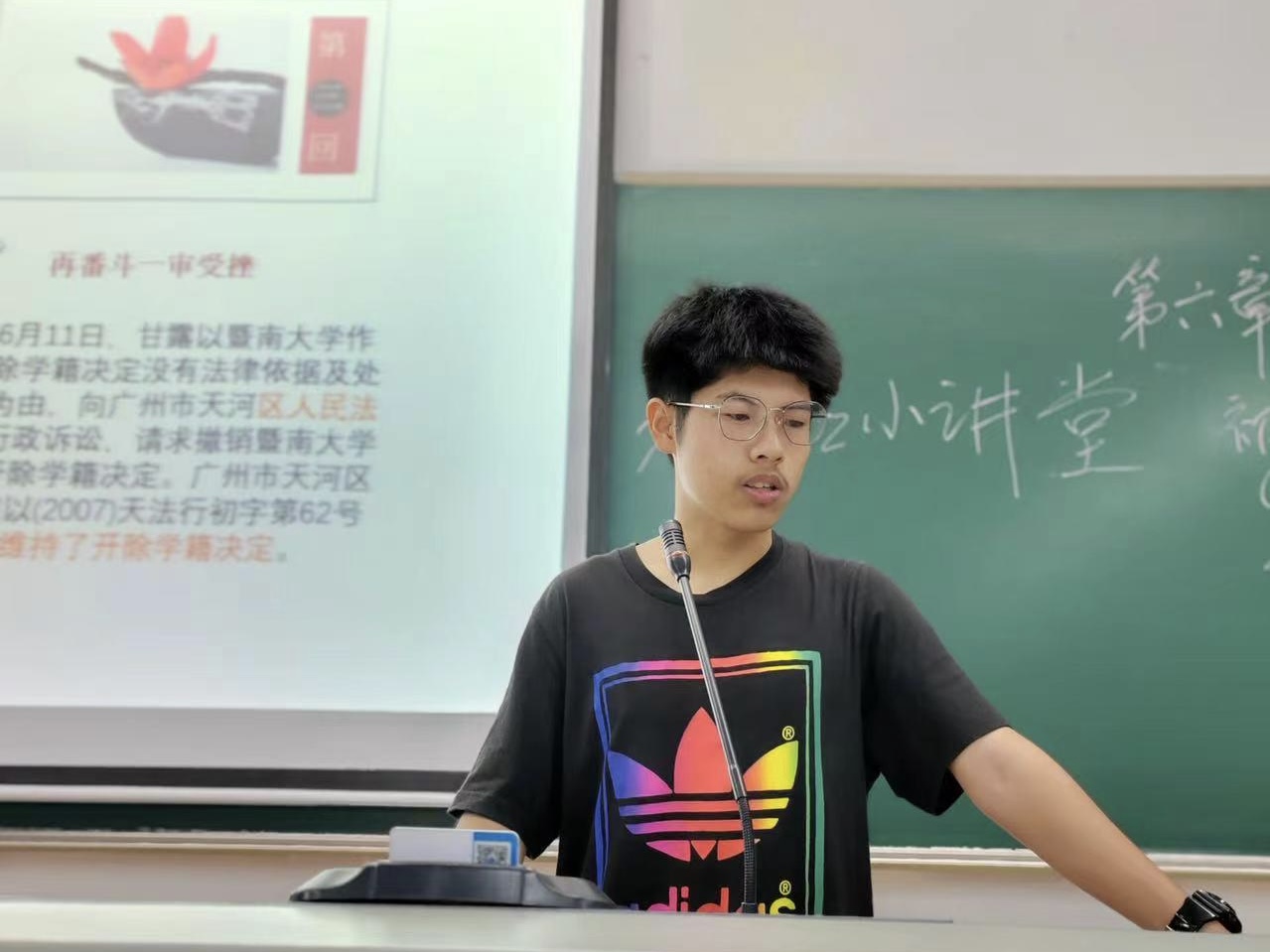 第十组戚予旸、厉成铭同学,分享了甘露论文抄袭案。研究生甘露论文抄袭后失去学籍,向法院起诉屡屡败诉,四年后在最高院翻案。