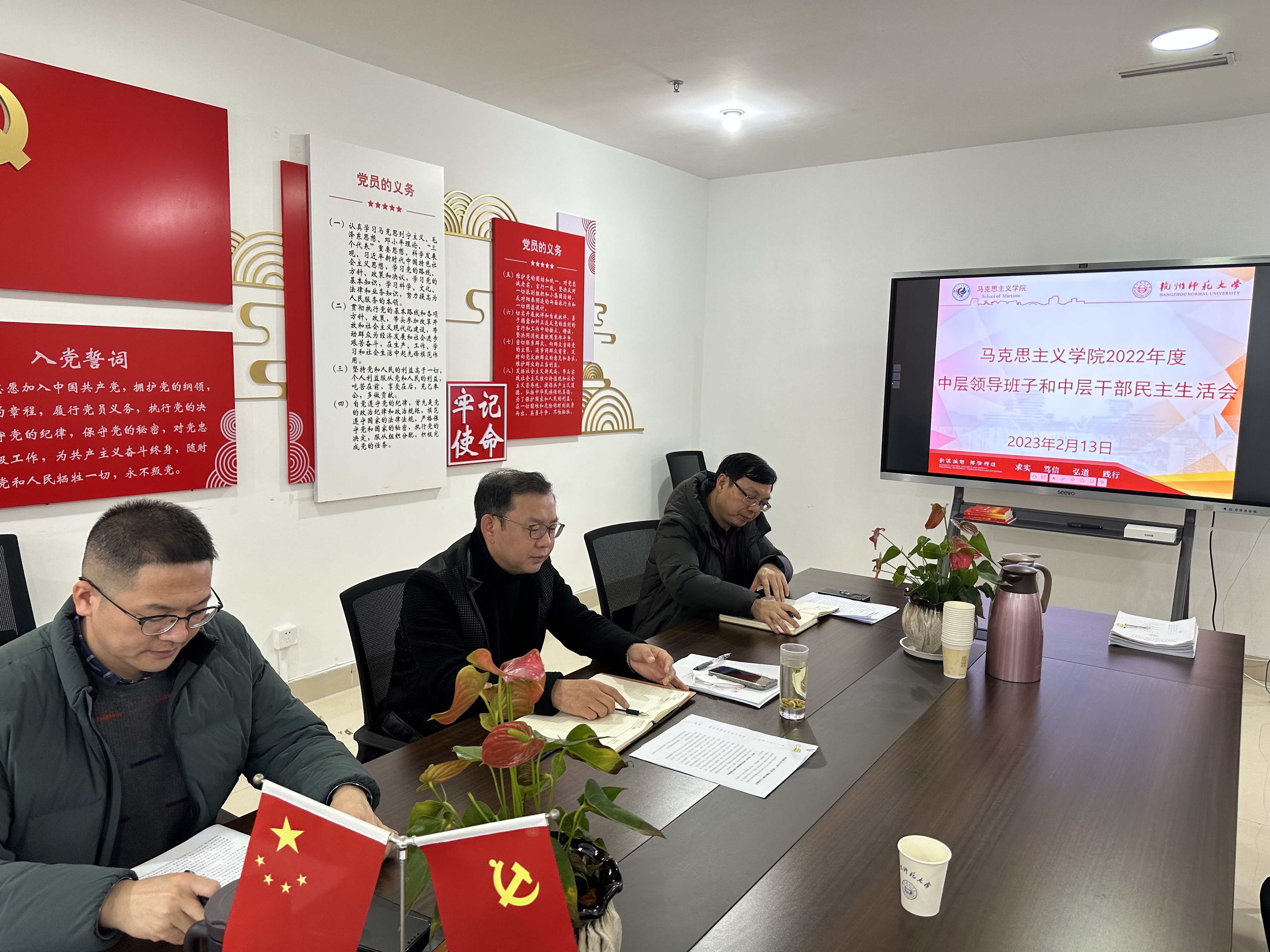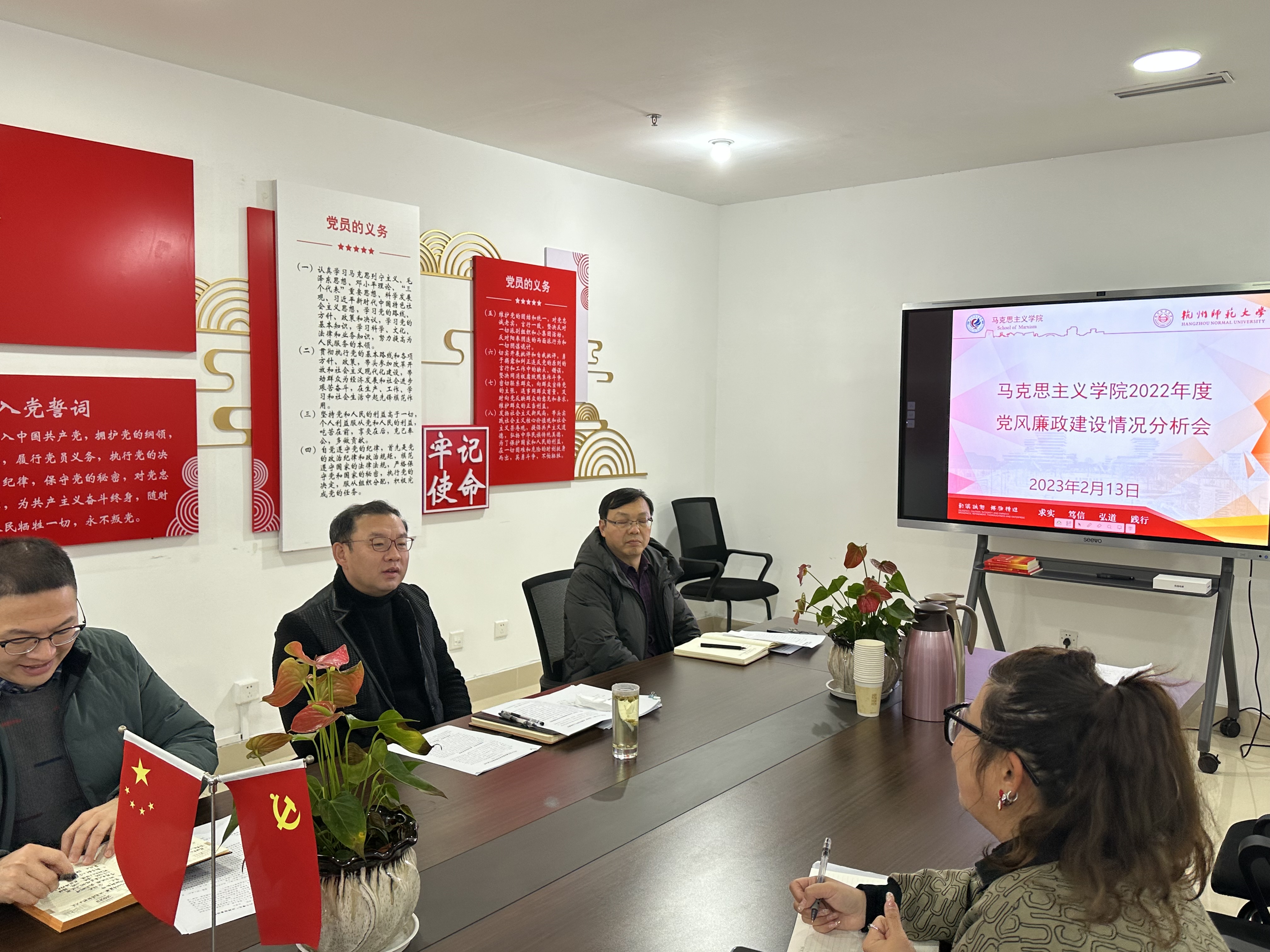 根据校党委组织部《关于召开2022年度中层领导班子和中层干部民主生活会的通知》及校纪委《关于召开2022年度党风廉政建设情况分析会的通知》要求,2023年2月13日上午,国产自拍 在恕园26号楼303会议室召开2022年度中层领导班子和中层干部民主生活会暨党风廉政建设分析会。学院领导班子成员参加会议,校纪委刘延轶老师列席会议,会议由马院党委书记李洪波主持。