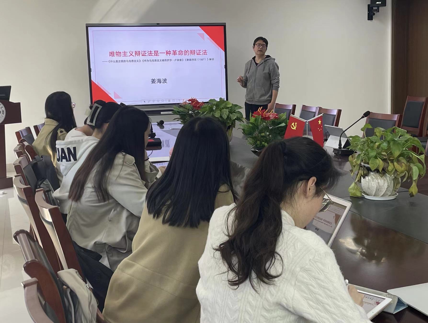 3月10日下午,“浙里·悦读”读书会联盟国产自拍 起原读书社在恕园26-104顺利举办新学期第一场读书分享与交流活动。本次读书会邀请姜海波副教授为马院师生作了以“唯物主义辩证法是一种革命的辩证法”为主题的专题报告,并细致解读匈牙利哲学家卢卡奇重要著作《历史与阶级意识》中《什么是正统的马克思主义?》、《作为马克思主义者的罗莎·卢森堡》与《新版序言(1967)》三篇文章的主要思想。学院部分老师和研究生们参加了本次读书交流活动。