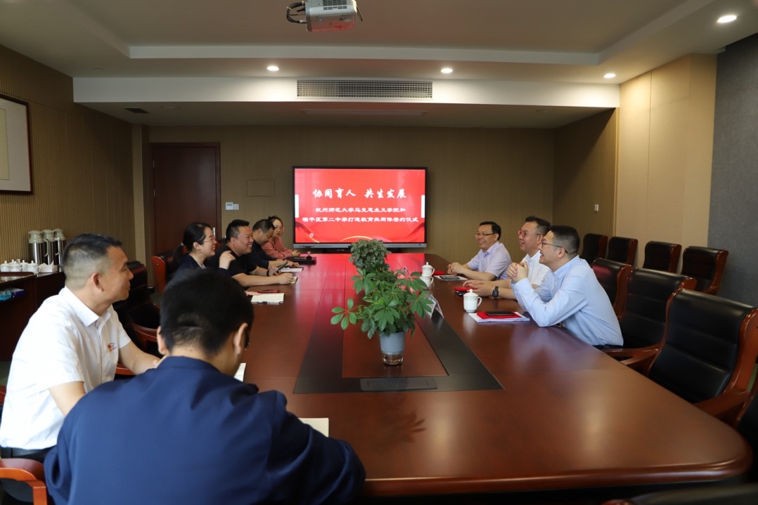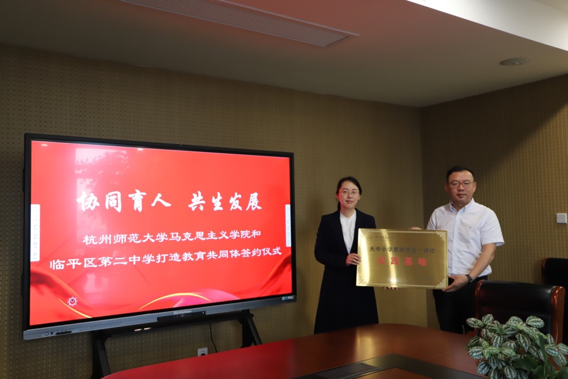 交流结束后,双方举行了党建、思政课一体化、教学实习见习建设的合作签约、授牌仪式,并共同参观了临平二中的校园和教学场所。