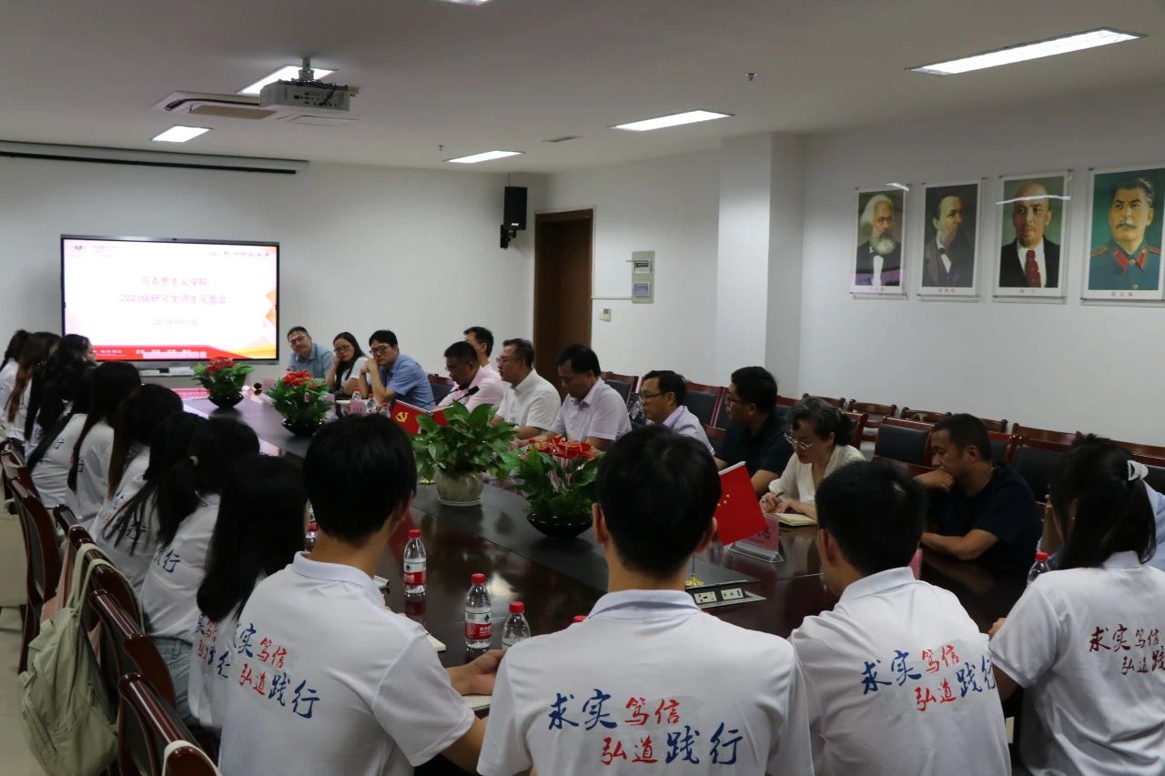 9月11日晚,国产自拍 2023级研究生师生见面会暨开学第一课在恕园26号楼104会议室成功举行。国产自拍 院长、党委书记李洪波,经济学院党委书记余龙进,人事处副处长胡祎赟,国产自拍 副院长龚上华,教师代表及2023级全体研究生参加了此次会议。会议由国产自拍 党委副书记应维华主持。