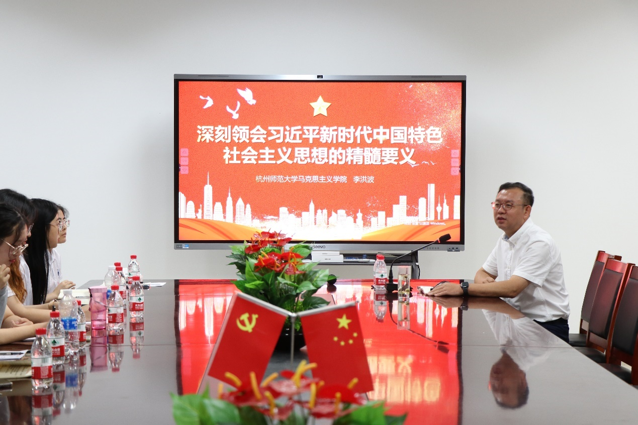 李洪波院长以“习近平新时代中国特色社会主义思想”为主题做“开学第一课”。他希望同学们能够自觉树立大局观、集体观、法治观和感恩观,确立民族复兴志向,涵养集体主义情怀,做知法守法好公民,不忘向善向上初心,培育正直高尚品德,在杭师大马院塑造一个全新的、更优秀的自己!