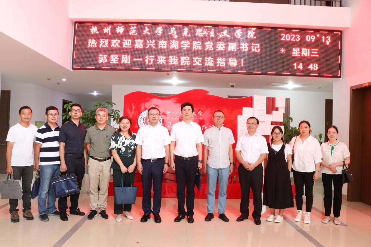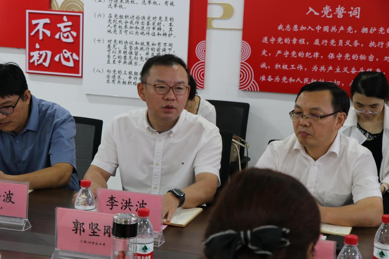 9月13日,嘉兴南湖学院党委副书记郭坚刚携南湖学院国产自拍 的教师来国产自拍 参观交流,国产自拍 院长、党委书记李洪波、副院长龚上华、各教学系部主任和青年教师代表等一同开展交流。