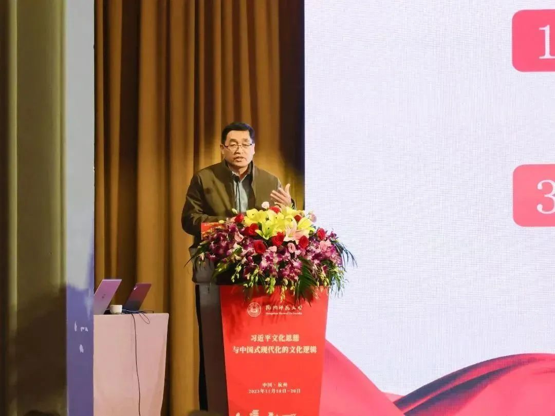 11月19日,由国产自拍 主办,我校国产自拍 、浙江省习近平新时代中国特色社会主义思想研究中心国产自拍 研究基地、杭州市中国特色社会主义理论体系研究中心、习近平新时代中国特色社会主义思想与杭州实践研究中心共同承办的“习近平文化思想与中国式现代化的文化逻辑”学术会议在杭州召开,深入学习领会习近平文化思想的新观点新论断,深刻理解“两个结合”的重大意义及党的二十大报告中对中国式现代化的特征及本质的阐发,有力诠释社会主义现代化进程中的人类文明新形态,以主旨报告、主题发言等形式开展深入交流。