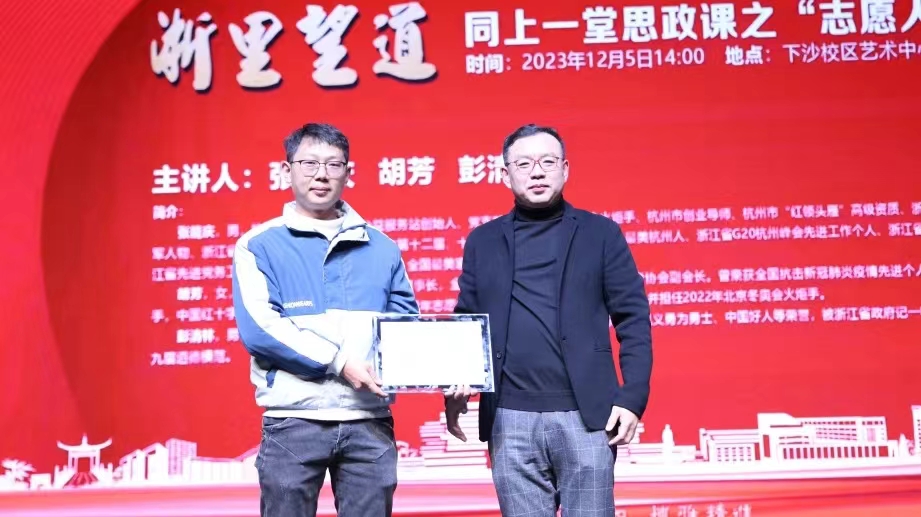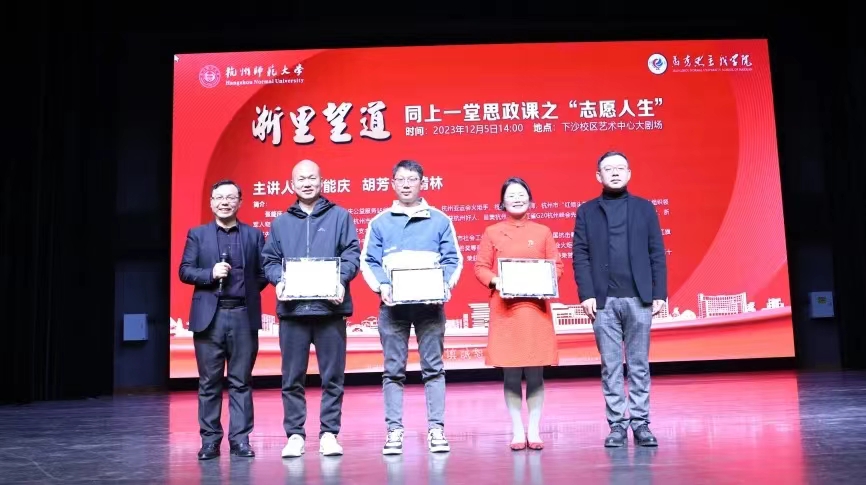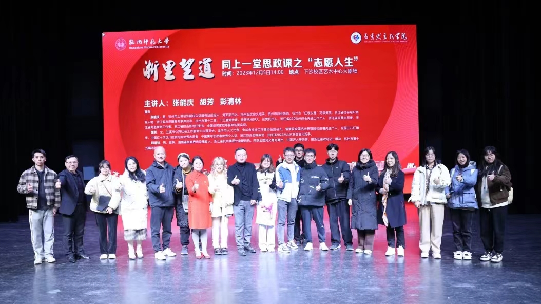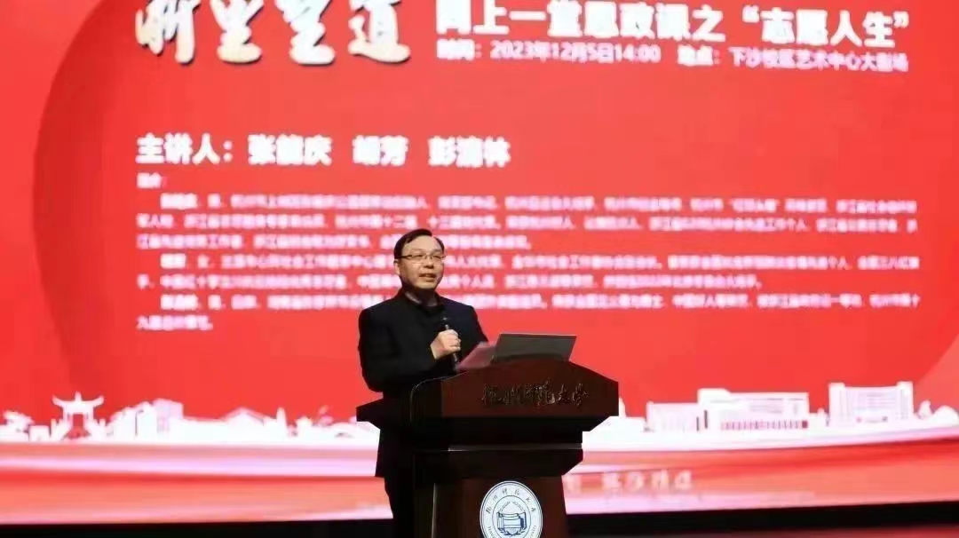 12月5日下午,恰逢国际志愿者日,国产自拍 “浙里望道”:同上一堂思政课系列活动第一期“志愿人生”专场在国产自拍 下沙校区拉开帷幕。1200名师生现场同上一堂思政课。本次活动紧扣“志愿人生”主题,专门邀请了三位致力于公益服务的社会活动名人名家彭清林、张能庆和胡芳,请他们分享自己的人生故事,让大学生们同步聚合、同频共振、同向发力,共同投身于志愿服务中,在社会大课堂中历练成长,为国家排忧解难尽一份力。
