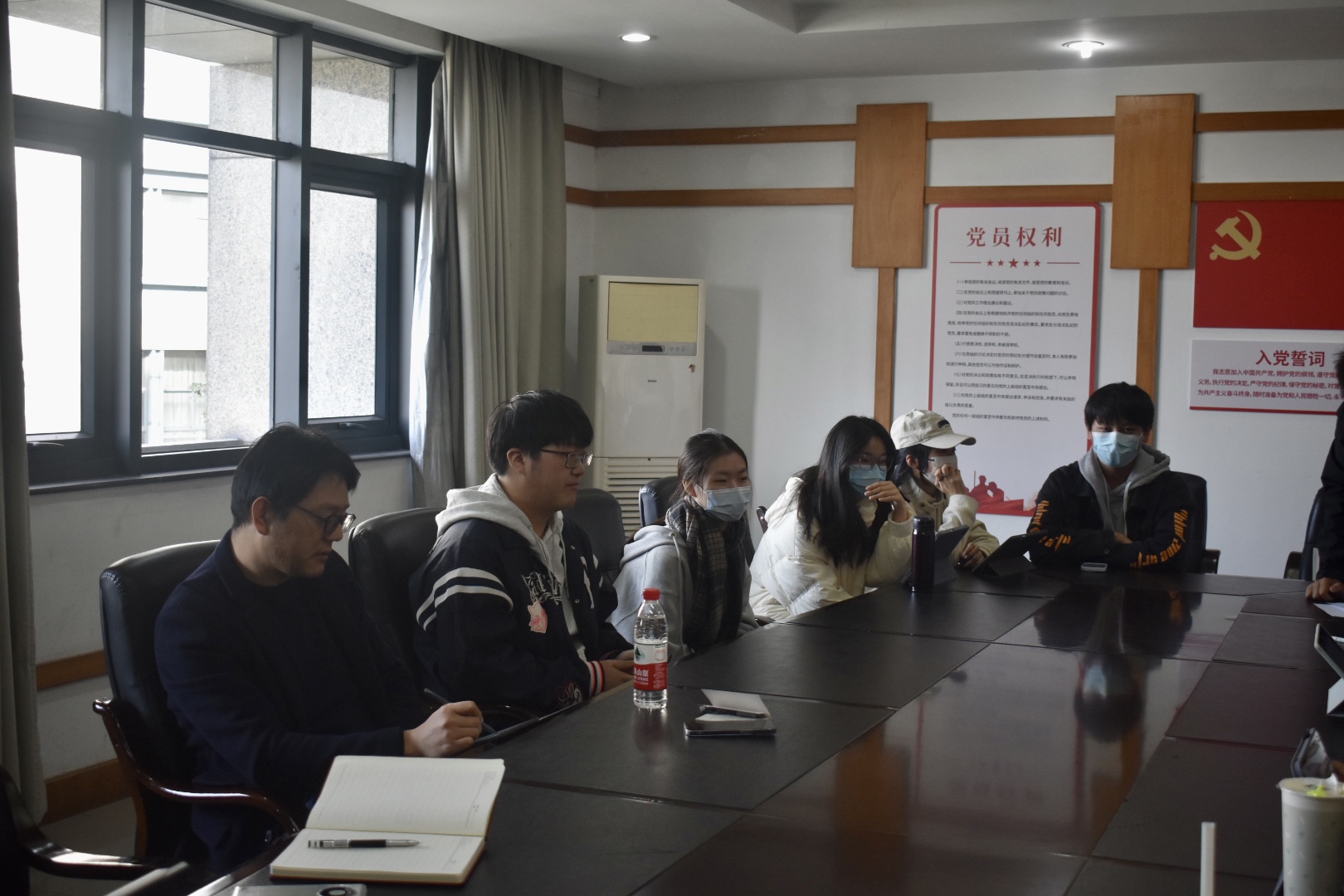 两位老师向同学们转达了马院领导与老师们对大家的深切关心和深厚期盼,并就同学们反映的问题展开进一步交流与沟通,表示会后会与学院领导及时汇报与协商,尽快解决同学们关心的问题。