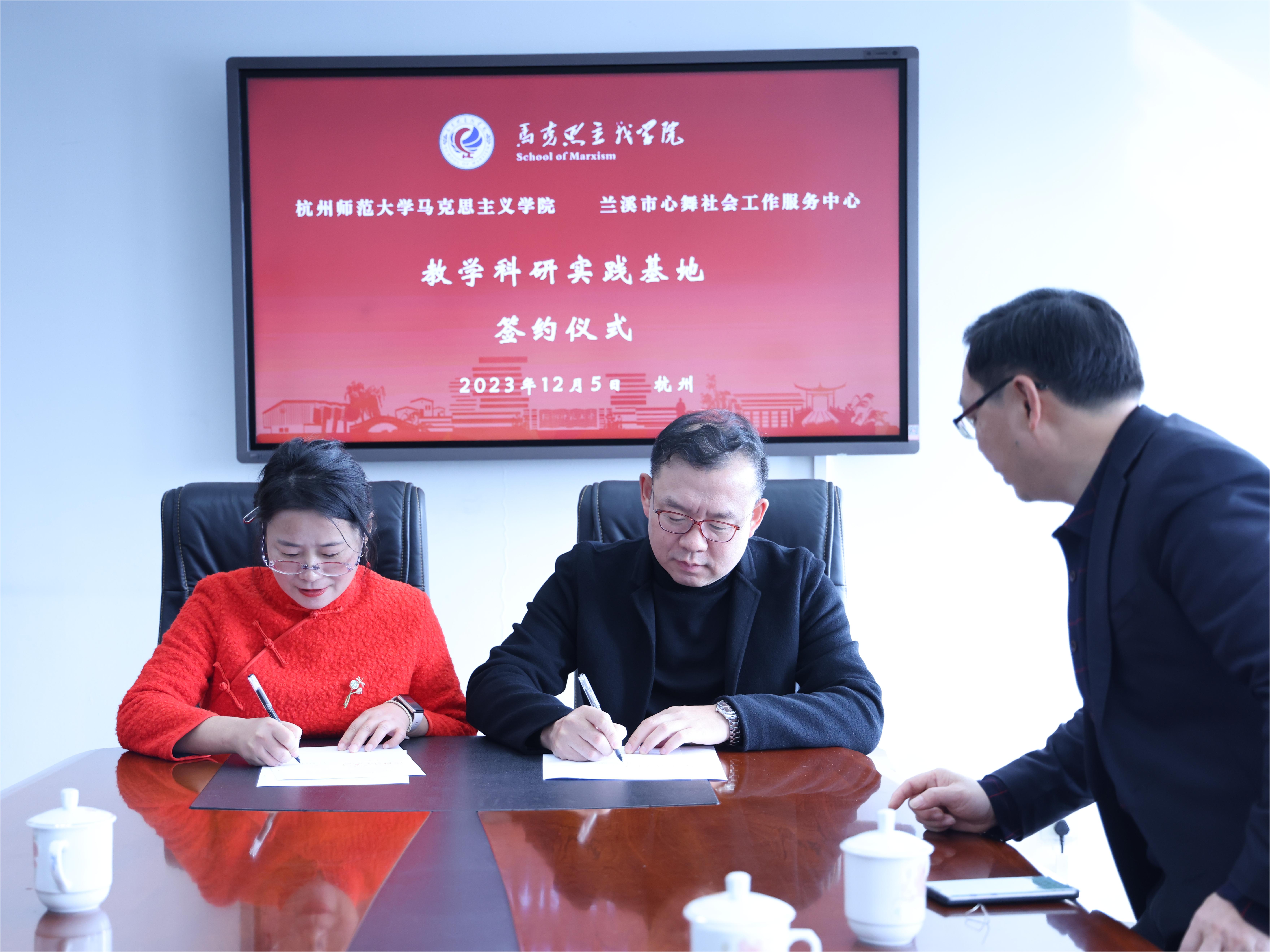 12月5日中午,国产自拍 与金华兰溪市心舞社会工作服务中心举行党建联建、教育科研实践基地建设签约及授牌仪式。