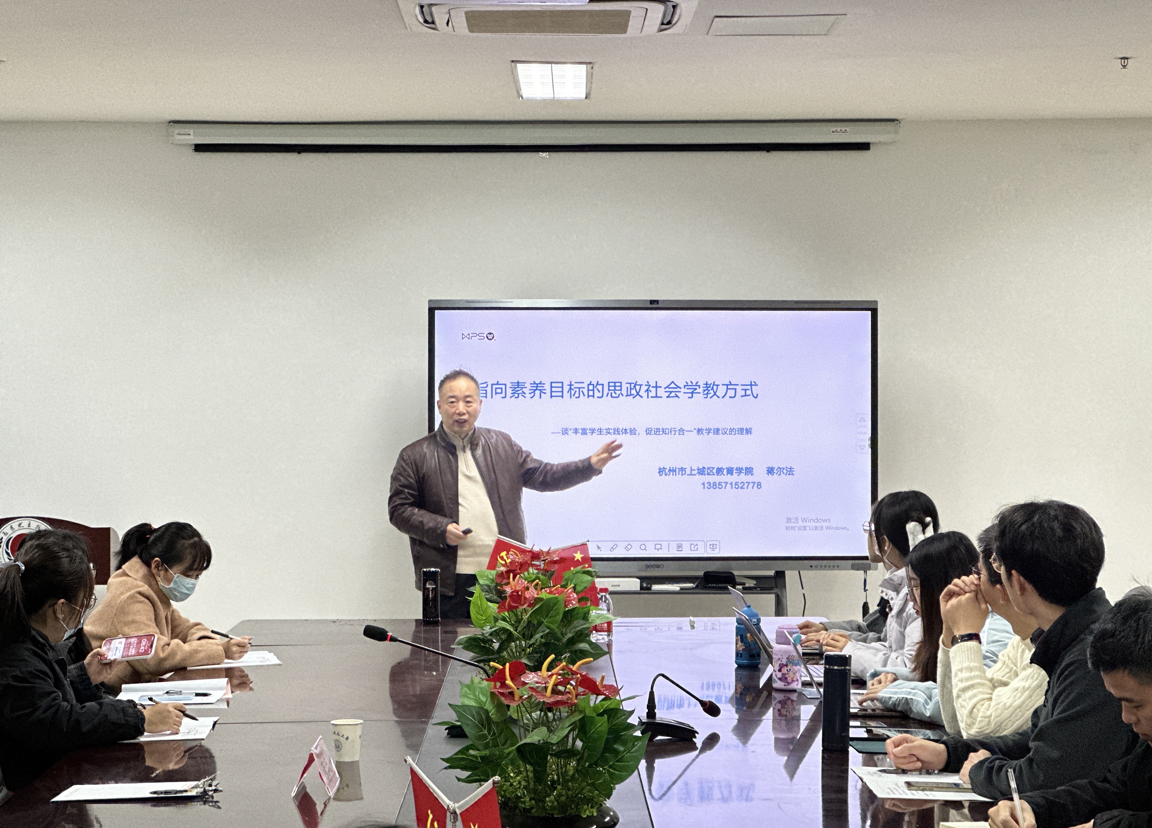 为帮助国产自拍 研究生了解就业形势,提高思政课教学技能,助力国产自拍 研究生高质量充分就业,12月15日上午,国产自拍 邀请杭州市上城区教育学院初中道德与法治、历史与社会学科研究员蒋尔法老师,为国产自拍 全体研究生作题为“基于核心素养目标的思政学科学教方式”的专题讲座。