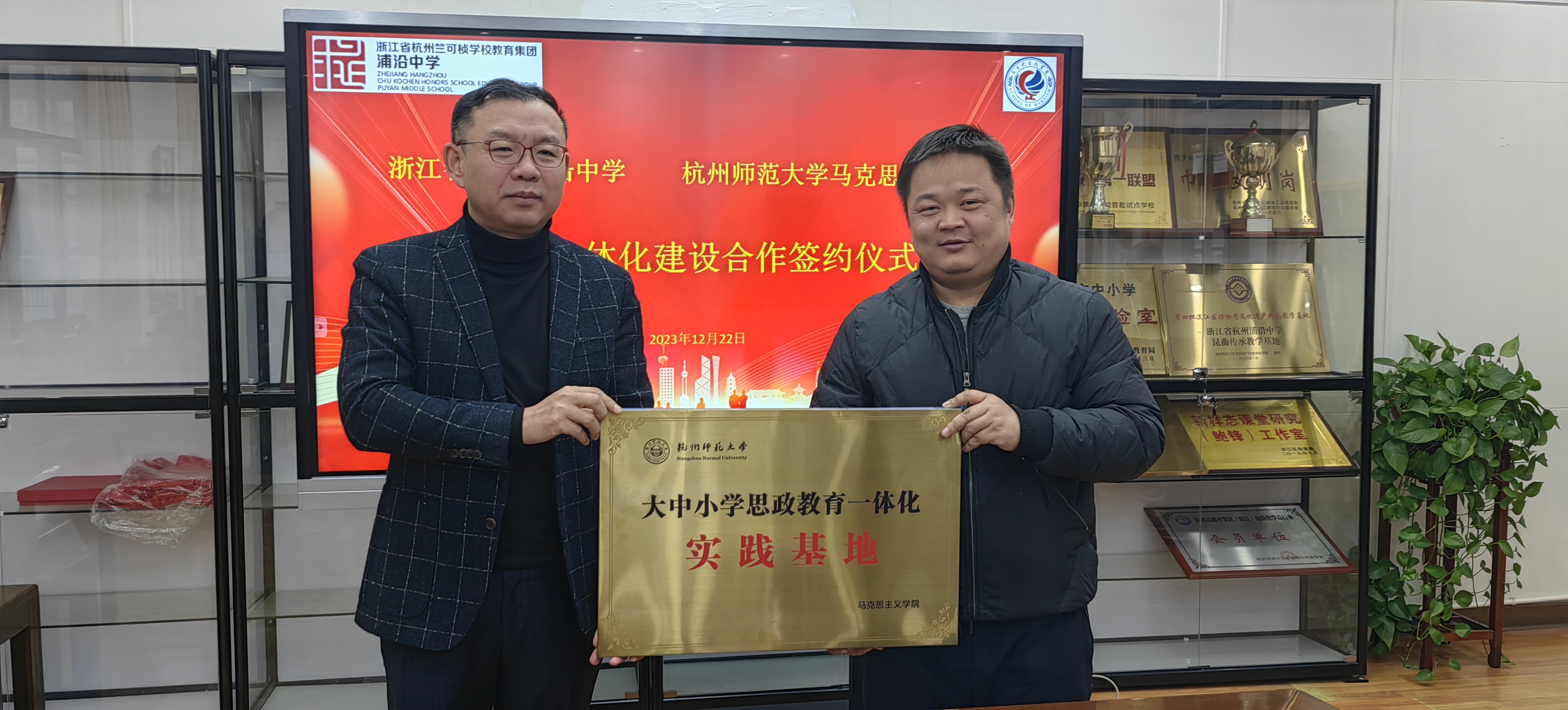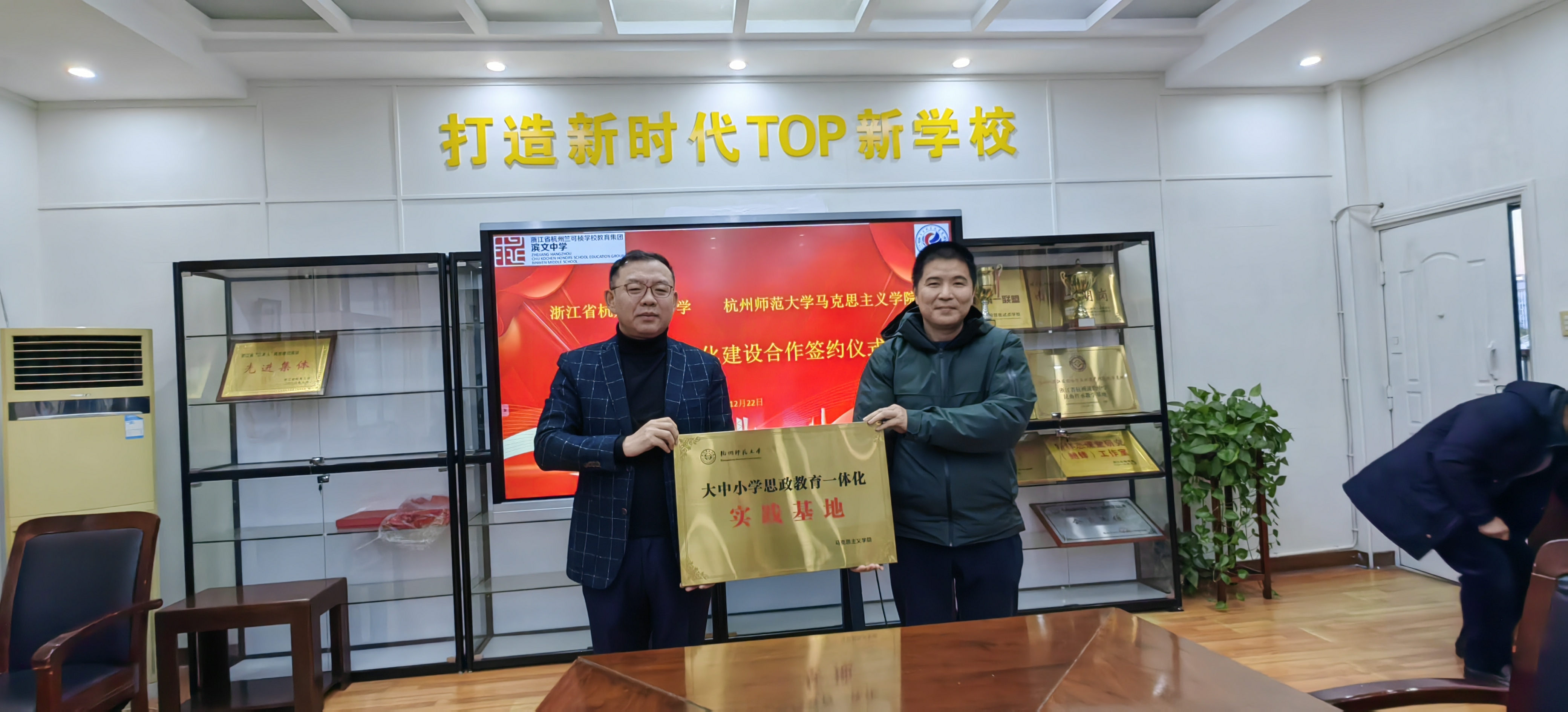 现场交流结束后,马院分别与竺可桢学校、浦沿中学、滨文中学三所学校进行了大中小一体化、教育教学实践基地签约和授牌。