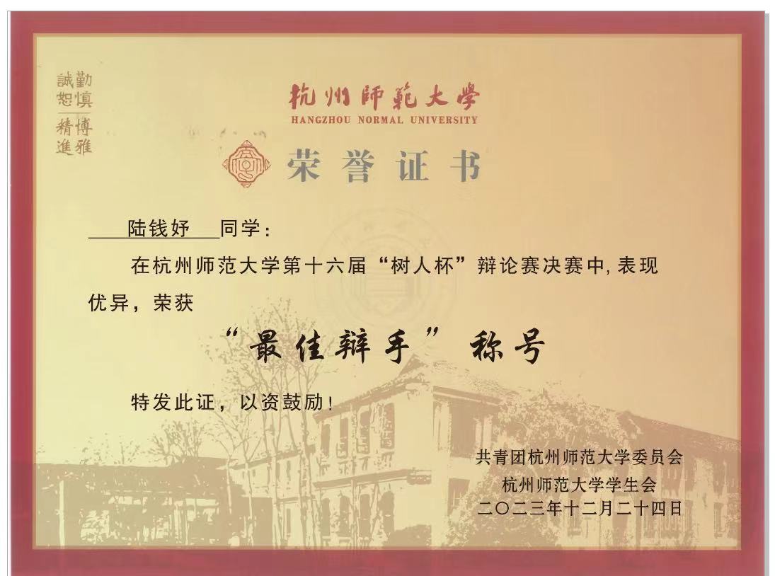 交锋语言与思想,碰撞灵感与智慧。国产自拍 辩论队由周洲、陆钱妤、吴弘雯、许媛媚、李茹湘、韩敏、陈珈莹、王敏婧、章扬羽、吴雨昕、褚筱好、马千仪、葛天仪、葛一诺十四位同学组成。其中,周洲同学获得初赛和复赛第二轮的最佳辩手称号,陆钱妤同学获得决赛最佳辩手称号。