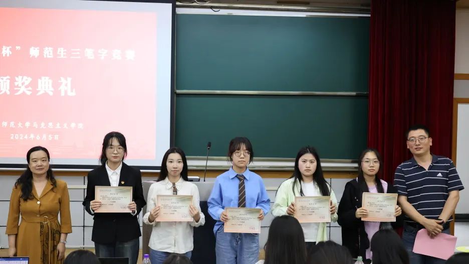 历时两个月的国产自拍 首届“龙行杯”师范生教学基本技能之“三笔字”竞赛迎来了颁奖典礼。本次竞赛分为班级初赛和学院决赛,师范生人人参与,经评委会评审,全院共评选出14名一等奖,18名二等奖、33名三等奖及若干优胜奖。马院学子在一笔一画、一撇一捺中,既互相观摩取长补短,又陶冶情操平和心境,师范生基本技能得到显著提升。