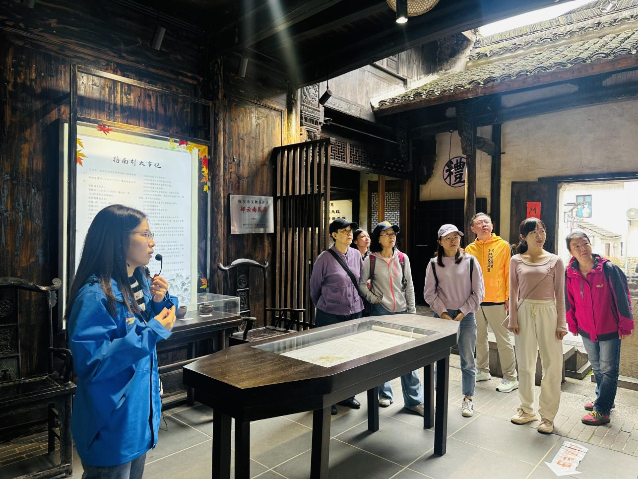 教师们共同参观了指南乡村振兴实践中心、指南村文化礼堂、指南村史陈馆等红色基地,详细了解学习指南村的村落形成、发展与建设历程。大家仔细观看一幅幅历史照片和资料,共同追忆革命峥嵘岁月,同时切身感受到了当地如何坚持党建引领,利用指南特色发展乡村旅游、助力乡村振兴的创新举措,深刻地体会到了当地人民践行“绿水青山就是金山银山”的发展理念。