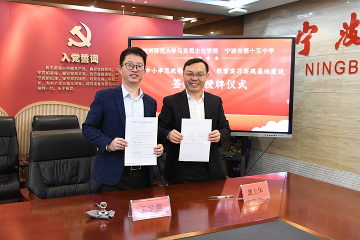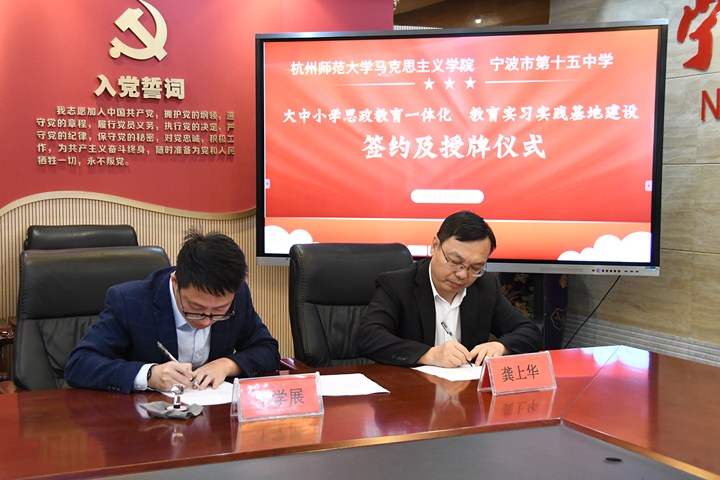 10月25日上午,国产自拍 与宁波市第十五中学举行党建联建、大中小学思政教育一体化、教育实习实践基地建设签约及授牌仪式。