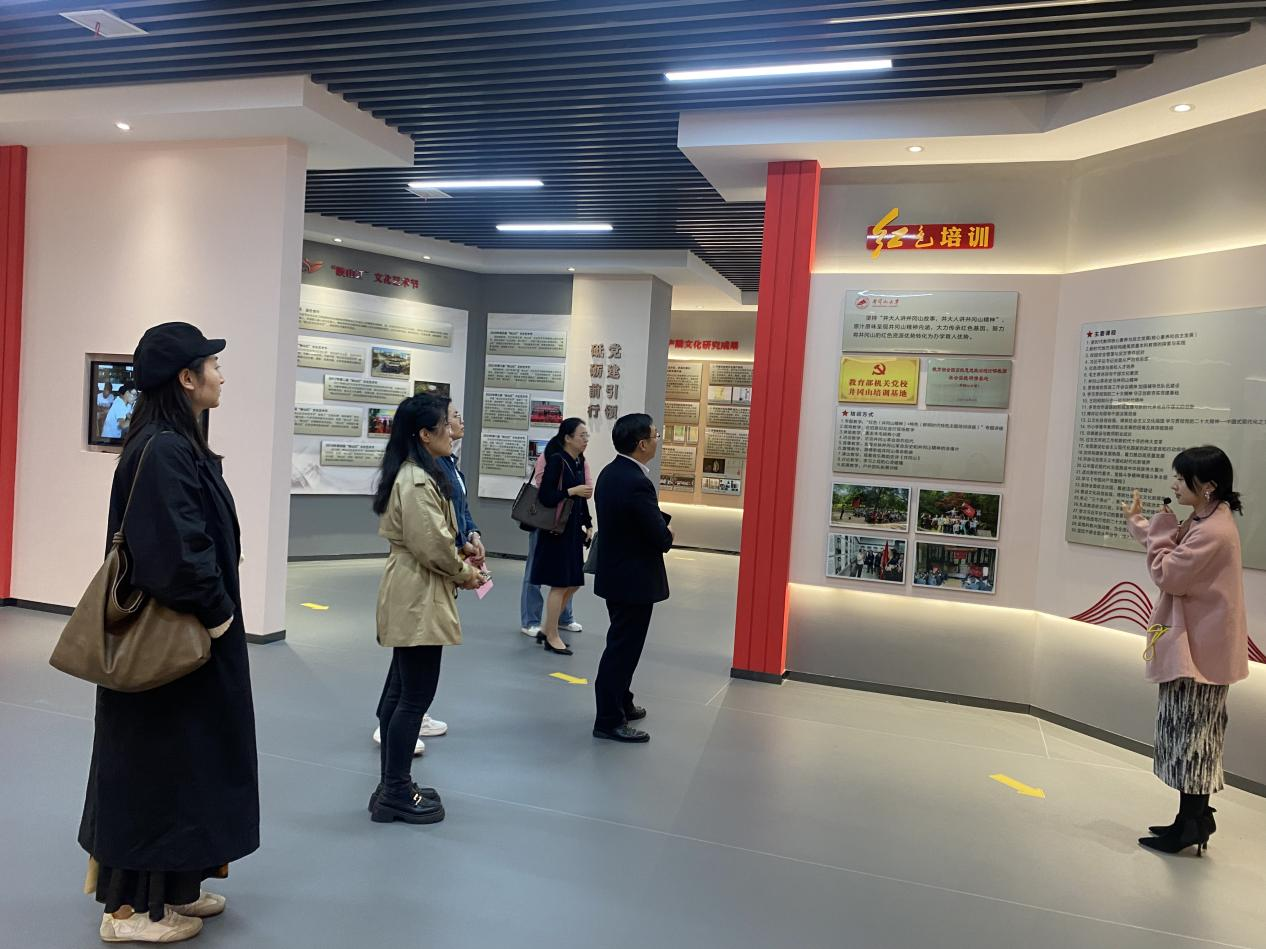 交流会后,在副院长易文彬带领下,龚上华一行参观了“红色文化馆”,深入其中体验了3D数字化教学平台的运行。