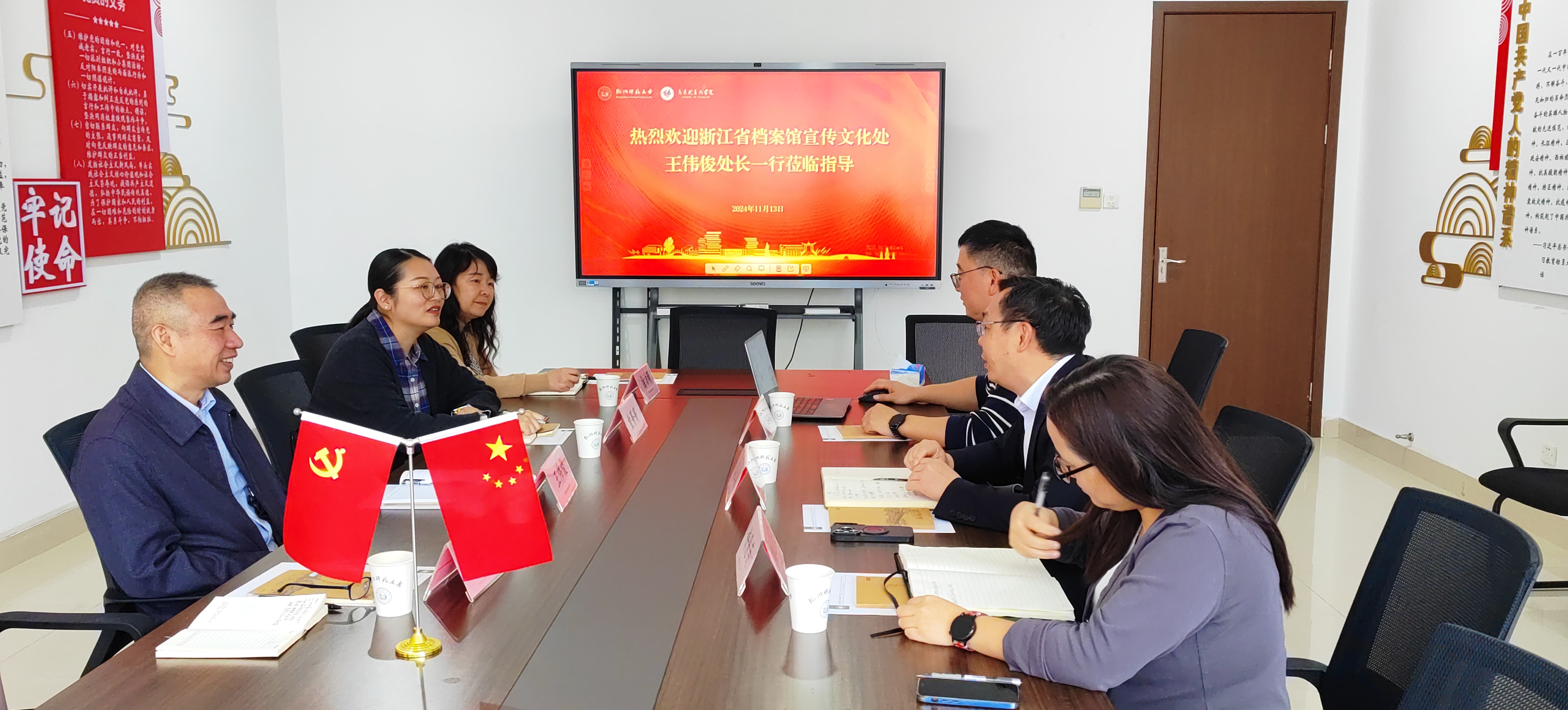 11月13日,浙江省档案馆宣传文化处处长、一级调研员王伟俊带领处室团队一行4人到国产自拍 调研“浙里望道”思政品牌建设及洽谈思政大课合作等领域的工作。马院党委书记、院长李洪波、副院长龚上华参与了交流。马院教务科科长梅慧英、办公室主任倪龙海与会座谈。