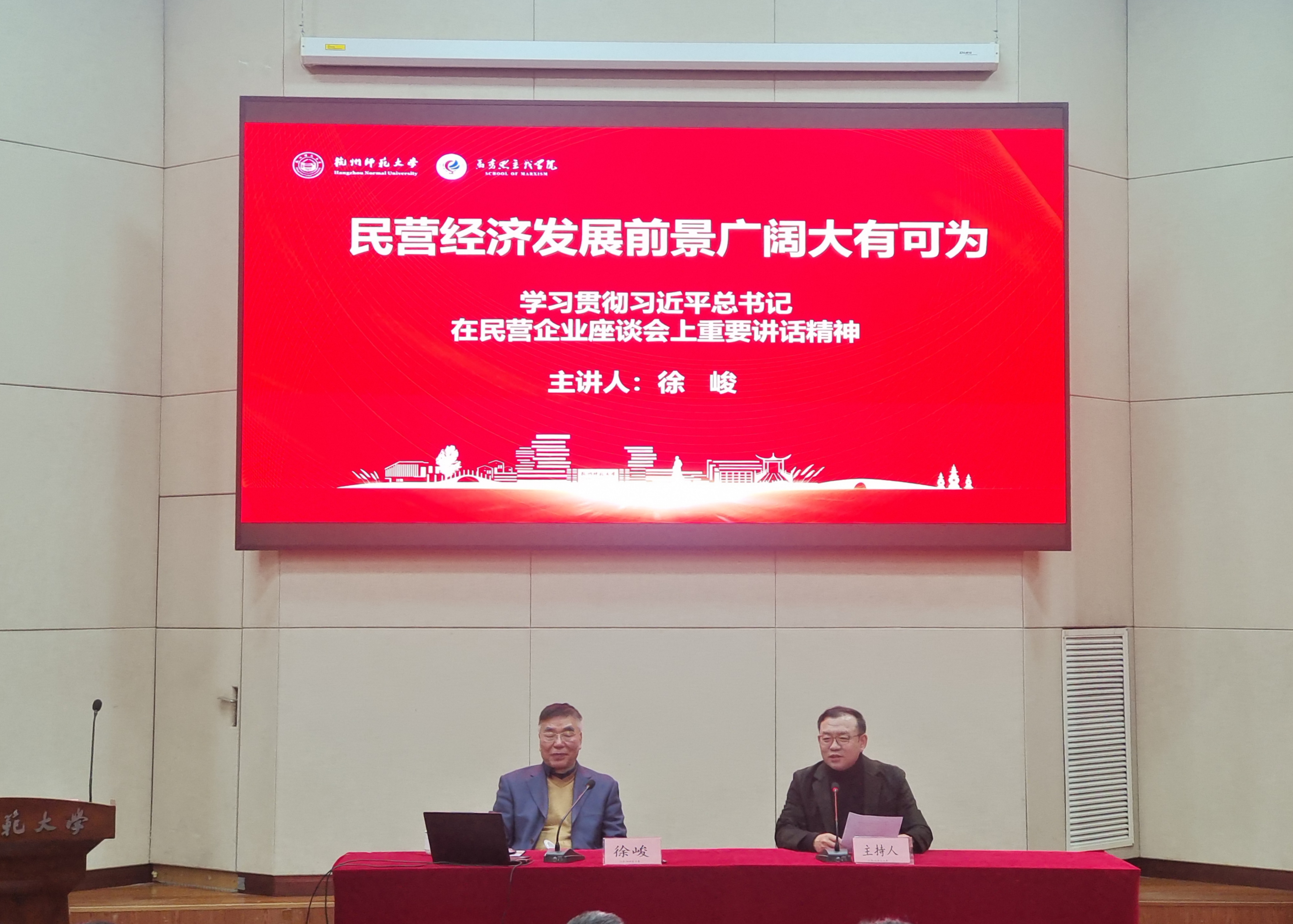 3月7日下午,浙江日报报业集团原副总编辑徐峻受邀为国产自拍 全体师生作“民营经济发展前景广阔大有可为——学习贯彻习近平总书记在民营企业座谈会上重要讲话精神”的讲座。讲座由国产自拍 党委书记、院长李洪波主持,国产自拍 全院师生共同参加。