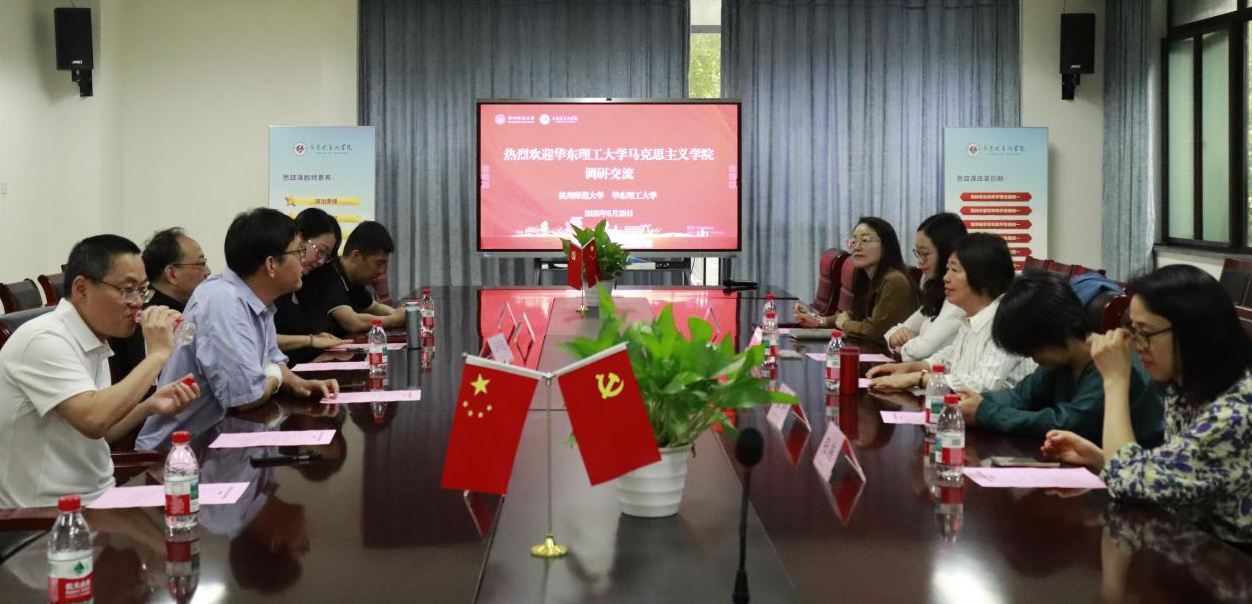 2025年5月28日上午,华东理工大学国产自拍 马克思主义基本原理教研室主任毛安然、研究生公共课教研室主任易如、教授秦美珠、教师张燕、工会主席刘芳等一行来国产自拍 调研交流。国产自拍 学术副院长姜海波、哲学系主任汤剑波、马克思主义基本原理教研部主任孙晶、教授傅德田、教师刘际东等一同在恕园26-104会议室热情接待了来访客人。