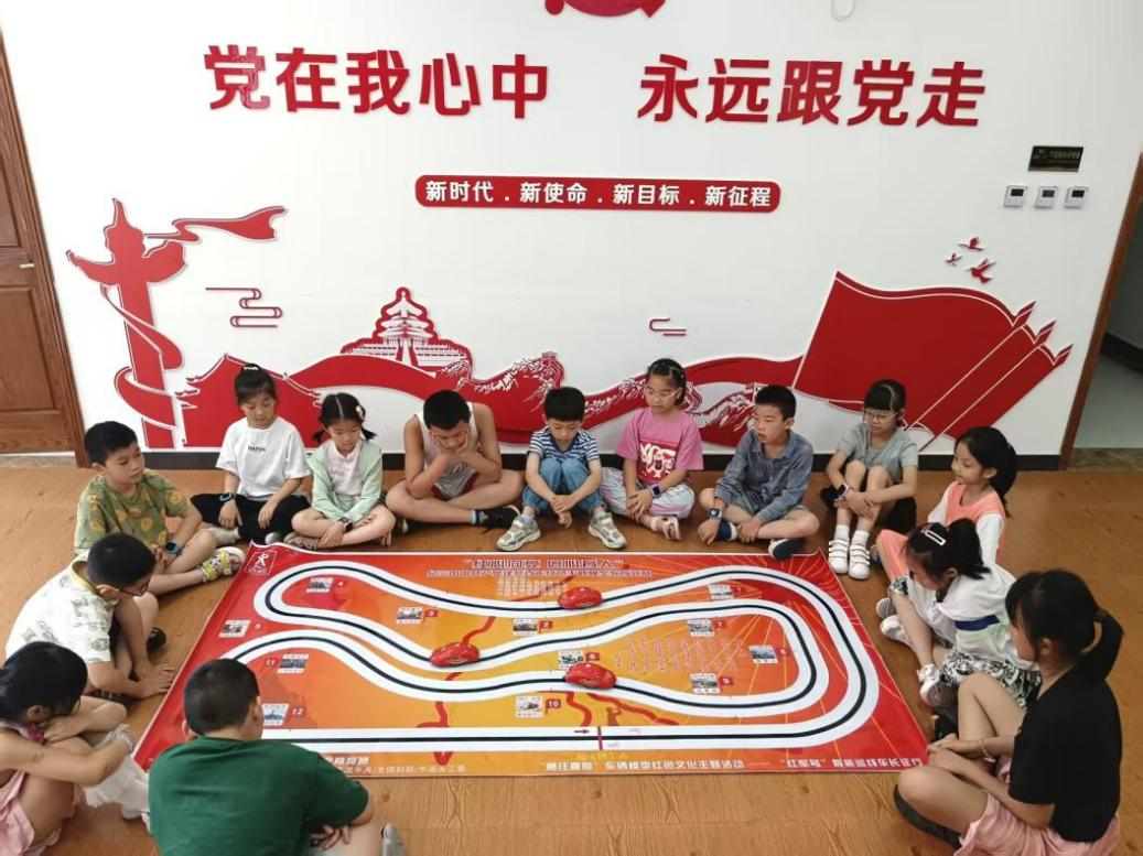 跨科实践拓边界,技术开启新体验。在当地工作人员协同下,团队成员采取“暑托班”形式,将素质拓展环节与多学科融合,如引导学生将编程控制与非遗舞龙结合,通过LED光影赋予传统民俗新活力,依托AI搭建的电路拼接方式,完成了“红军号”智能循线车制作,对红军长征的历史有了更深刻的认识。