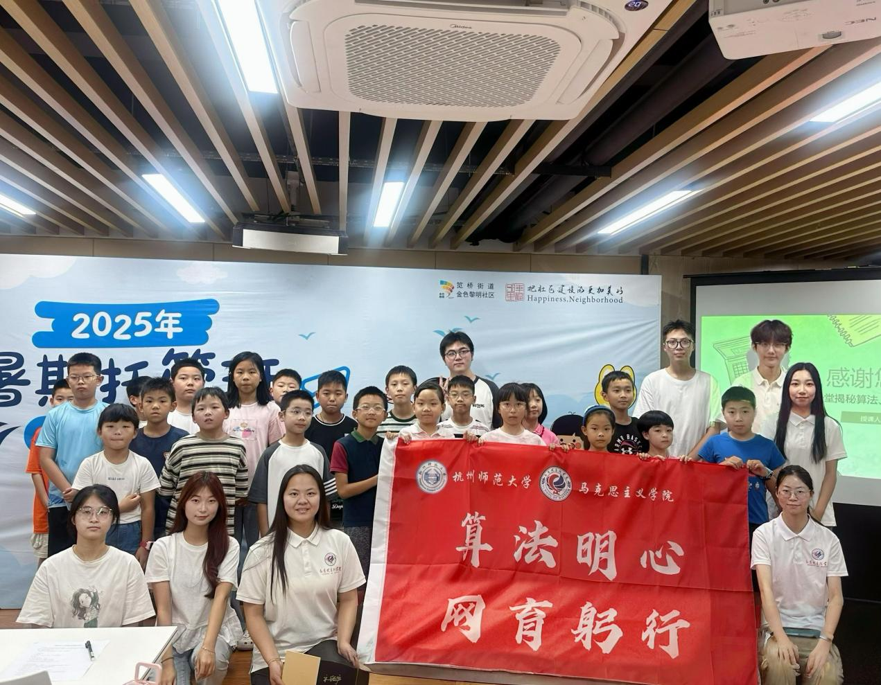 7月14日下午,国产自拍 “算法明心,网育躬行”暑期社会实践团队来到金色黎明社区党群服务中心,为社区青少年带来了一堂别开生面的“算法揭秘”必修课。
