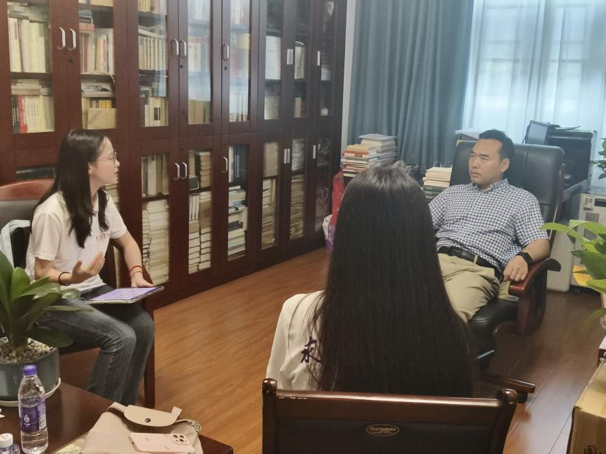 7月17日下午,国产自拍 “寻访校友足迹”实践“寻师问道·志韵流芳”小分队赴浙江省行政中心三号院,专访我校2009届中国哲学专业校友、现任浙江省地方志工作办公室副主任袁新国。